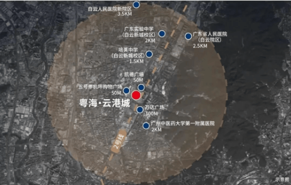 粤海云港城项目:3公里内汇聚3大百万商圈、5大三甲医院、8所学校的优越配置,高密度的资源配套集中,让白云新城CBD的都芯资产,注定所求者众多,也注定比较少。