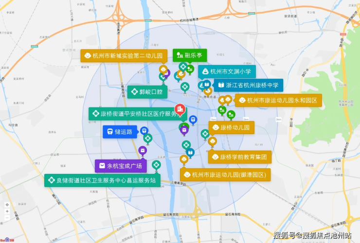 直线3km范围内有29个幼儿园;6个小学,如杭州市文渊小学、杭州市文渊小学(新城校区)、杭州市杭行路小学谢村校区、杭行路小学运河校区、崇贤第二小学(杨家浜校区)等;4个中学:浙江省杭州第十四中学康桥校区、运河新城GS1003-A33-15地块36班初中、浙江省杭州康桥中学、浙江省杭州第十四中学附属学校。