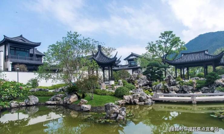 北入户,单边位,入户四水归堂,前后花园宽阔,围合式设计,传统中式建筑风格,文化底蕴浓厚,且私密性好,远眺凤凰山山景尽纳眼底