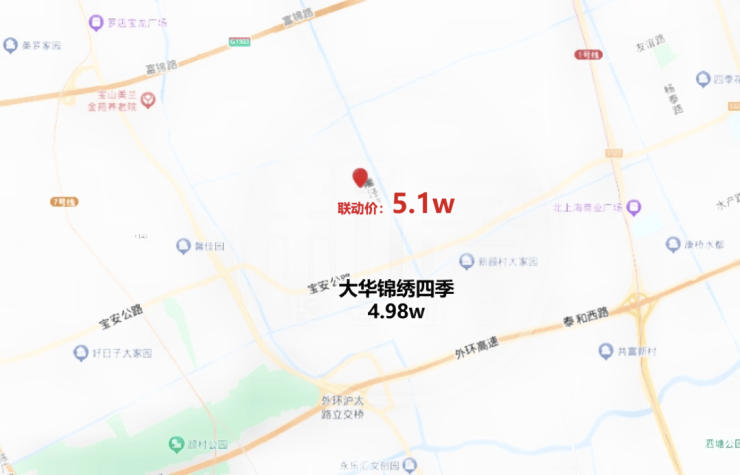 配套方面,距离1号线宝安公路站直线距离约3.4km,距离7号线+15号线顾村公园站直线距离约3.3km,属于“两头不靠”,只能通过公交车接驳,不知道后期开发商会不会开通班车服务。