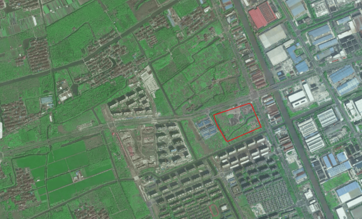 地块西侧规划有商服用地和幼儿园用地,北侧和东侧是公共绿地,南侧白荡河,通过百度地图2020年3月的全景可以看到这条河是这样的。