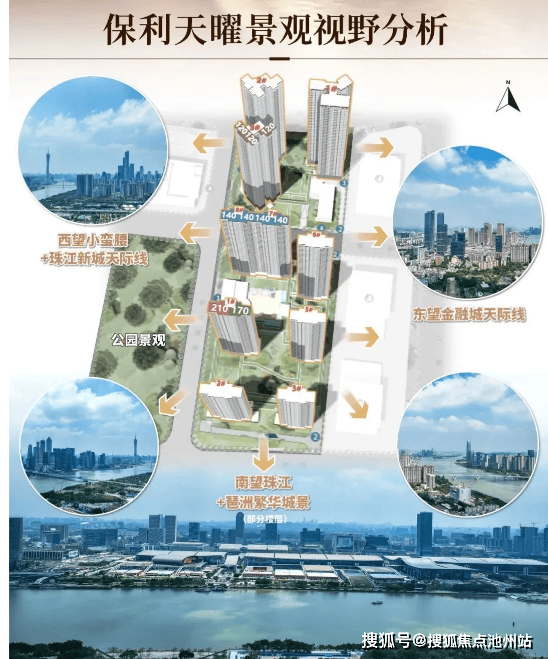 保利天曜总用地面积约 41300㎡,总建筑面积约 124600㎡,总户数约 968 户,分南北两地块开发:南地块(AT080721)容积率 3.1,规划 7 栋全 T2 板楼(34-45 层);北地块(AT080720)容积率 3.8,规划 3 栋 T3/T4 塔楼(45-47 层),梯户比涵盖两梯两户 / 三户 / 四户,保证居住私密性与舒适度。项目为超新规产品,阳台面积占比达 25%,公共开放空间不计容面积 10%,使用率处于全市豪宅第一梯队,建筑采用晶感外立面与玻璃幕墙设计,融入 “鎏金美学” 风格,打造珠江前航道全新豪宅天际线。社区以传统轴对称制式规划约 330 米园林通廊,搭配下沉庭院、艺术雕塑与繁茂绿植,更打造 “非遗为魂,鎏金为骨” 的星曜会所,涵盖恒温泳池、健身房、国医理疗馆等高端配套,尽显天字系标杆品质。