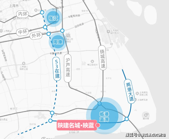 还有在建S3高速(在建),可直通张江,据悉S3还能和两港大道实现互通。