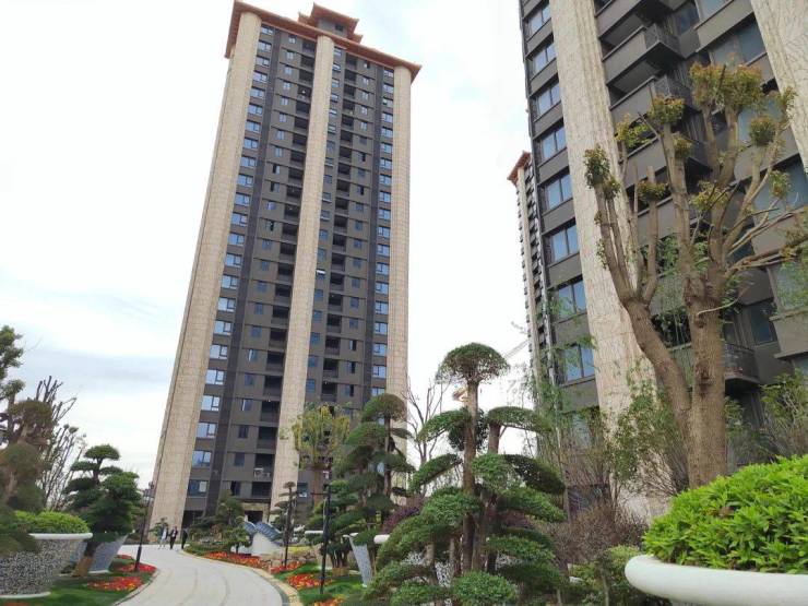 项目外立面采用的是 天然石材和真石漆 ,每幢楼的四个方向, 由下至上共布置了11条仿若祥龙般的石材 ,使建筑外立面更富立体感、经久耐用历久弥新!