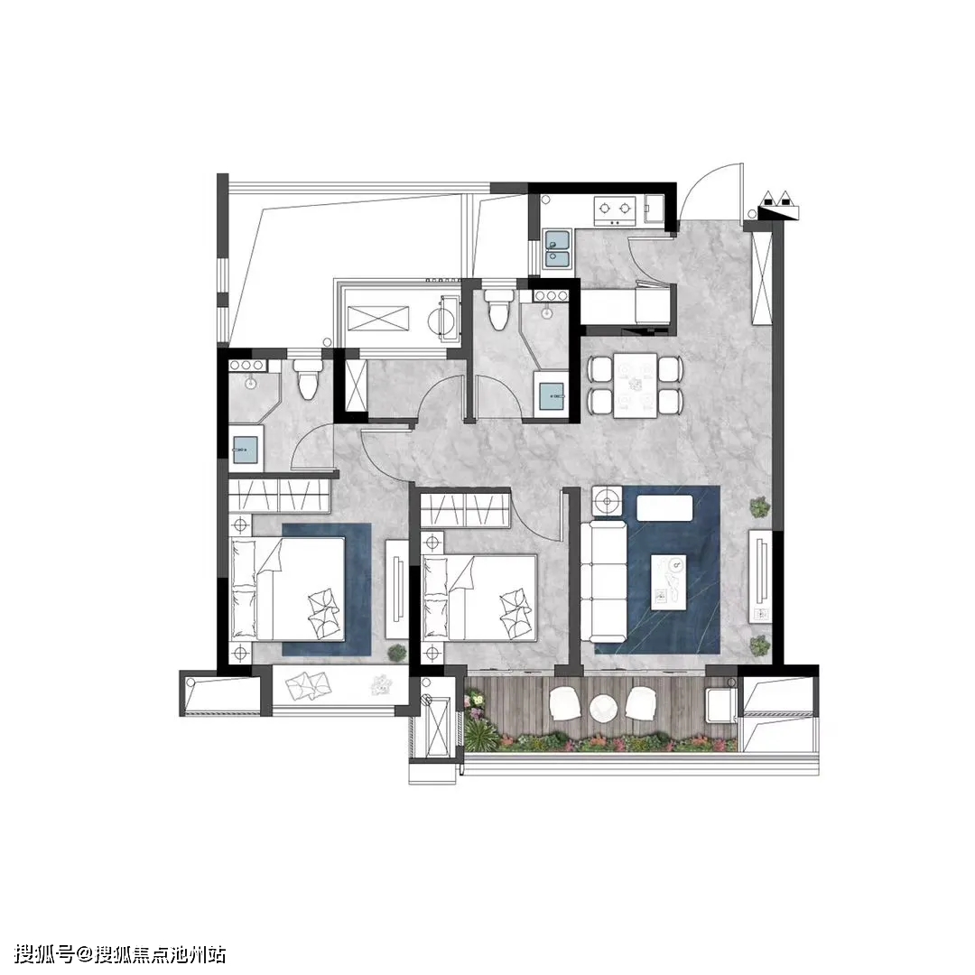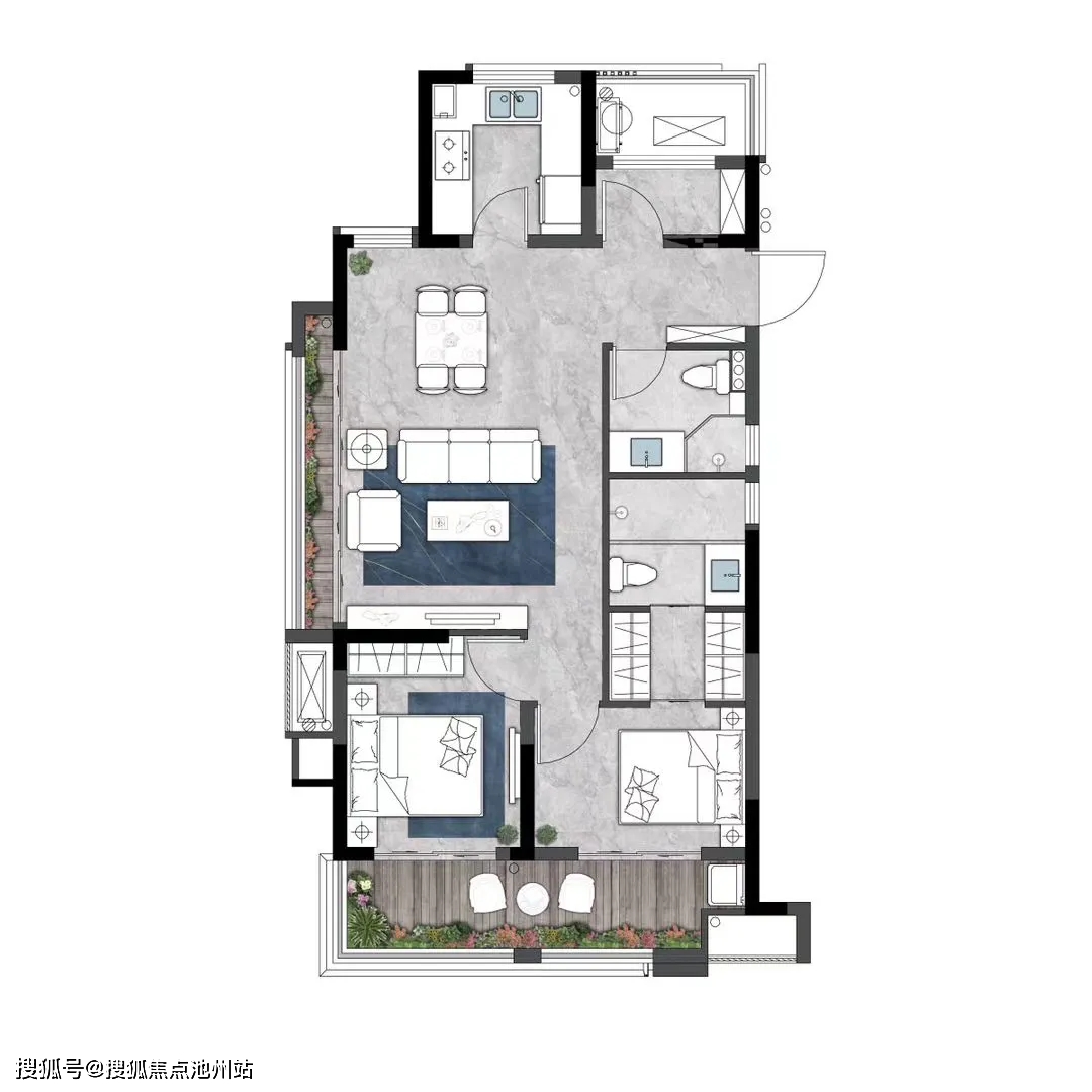 南向双联阳台:宽幅阳台,可莳弄花草、可做健身角,让生活更多可能