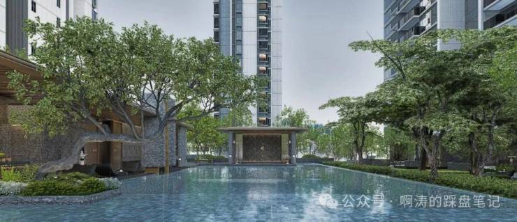 规划约550 ㎡成人泳池、约 40 ㎡的儿童池及按摩池,并打造星级酒店会所吧台。对标顶级安缦酒店风格,选用被誉为“奢华酒店的鼻祖”的华尔道夫酒店同款南亚宇宙黑奢石,打造高约 5.5米的仿生自然生态流水瀑布,搭配奢石中的“爱马仕”——铂金钻 吧台,尽显奢华;