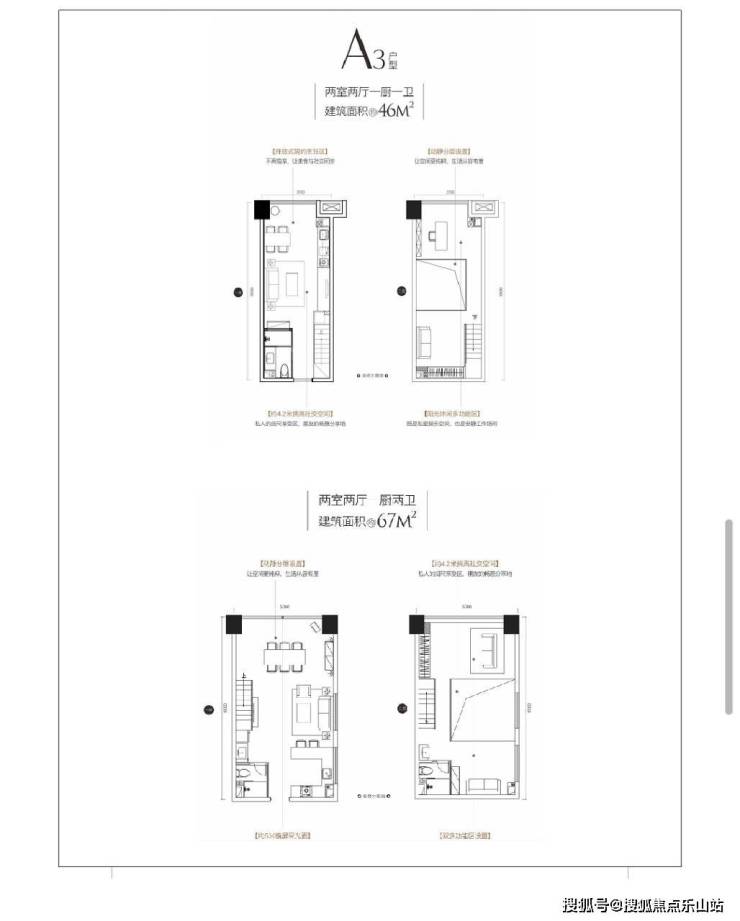 LOFT灵活改造:4.2米层高可隔为两层,67㎡户型实际使用面积可达约90㎡+。