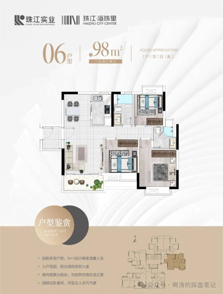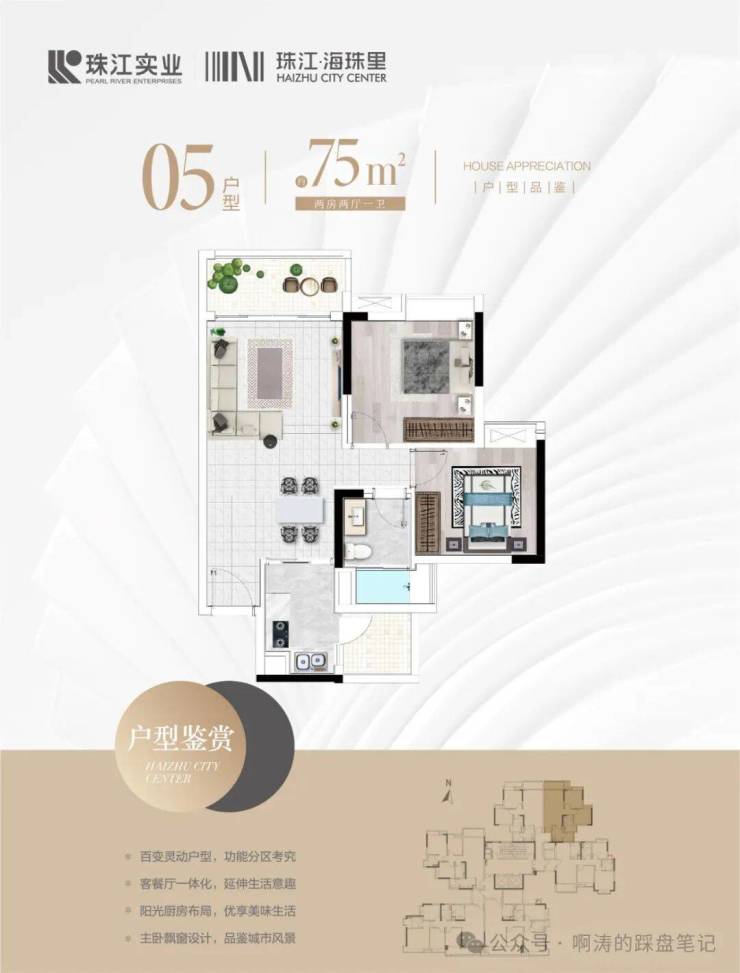 秉承初心,精工匠筑,打造建面约75-129㎡城芯臻品,户型全明方正,约85%超高实用率;采光通风俱佳,拥抱清风和阳光;承载海珠芯的人居理想,敬献城市精英人士。