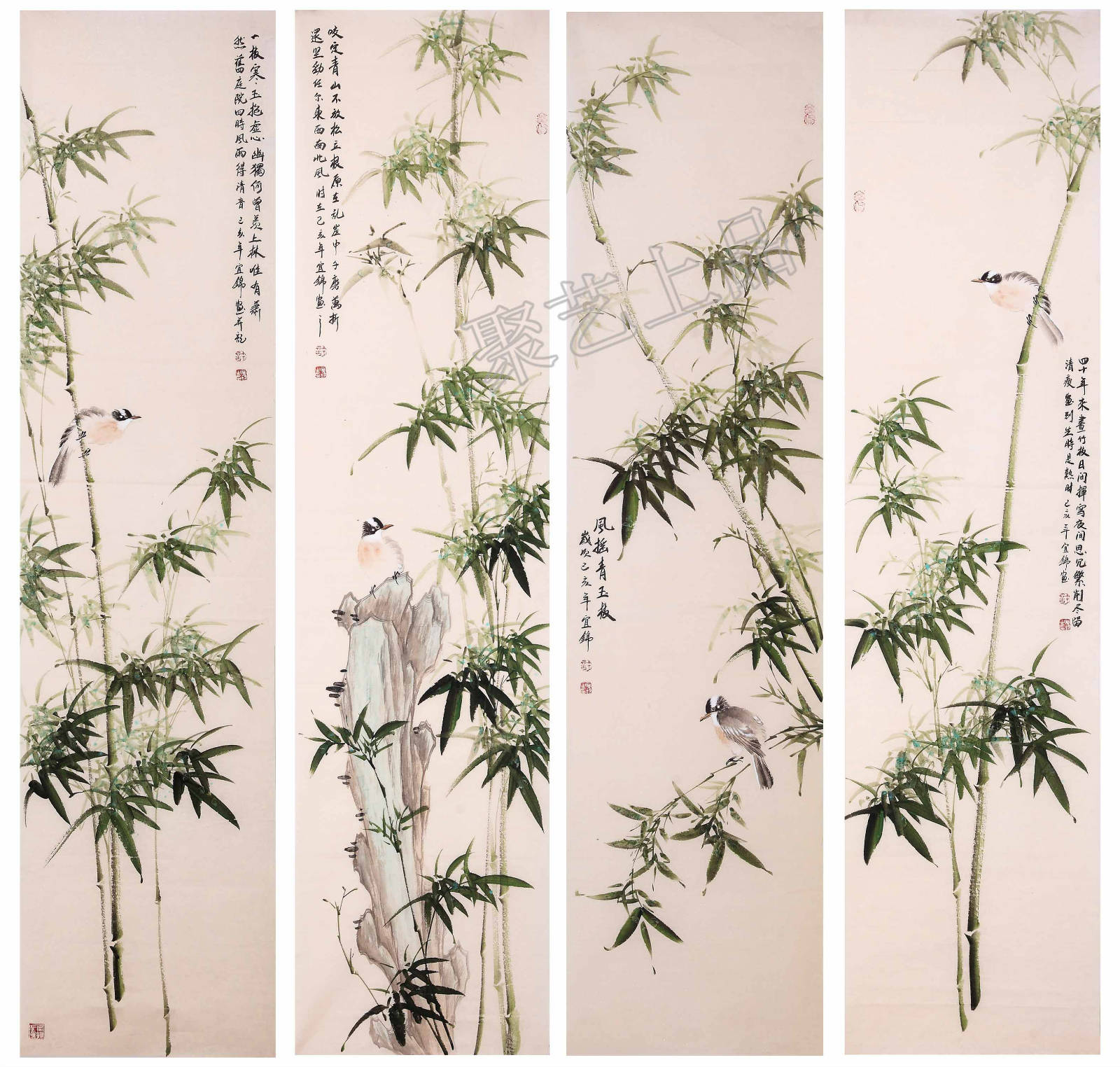 许宜锦国画竹子《四条屏》作品选自:聚艺上品
