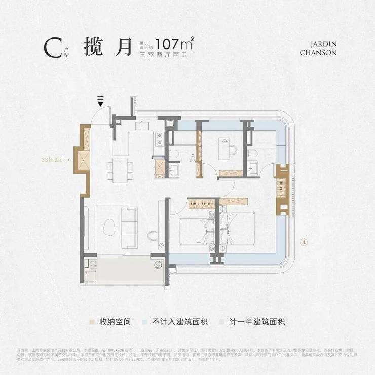 杨浦新江湾城的建发海宸,100平小户型就有双阳台,也因为多了阳台,次卧空间和主卧差不了多少。