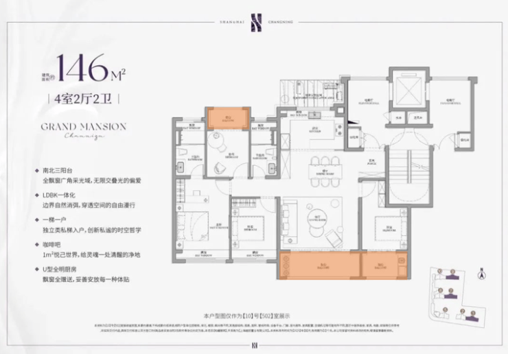 阳台的高赠送也让和樾长宁四房户型的实得率达到了92%,如果以实得面积来计算单价的话,与周边二手次新项目形成了至少3w的倒挂。