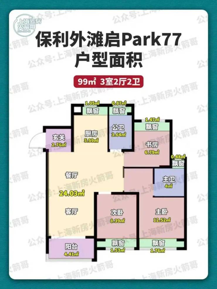 99㎡小户型都做到了全屋6飘窗,飘窗附赠面积总和达到了7.16㎡,已经接近一个次卧的大小了;