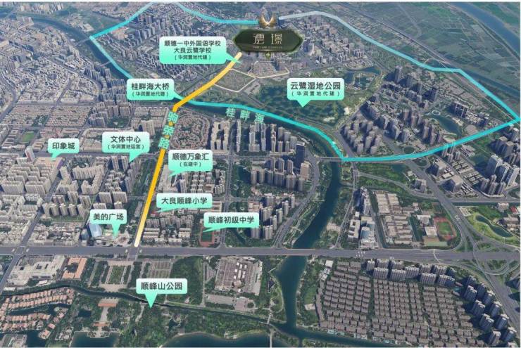 华润置地·顺德澐璟,坐落于佛山市顺德区大良街道的云鹭片区,这一区域不仅是顺德城央的璀璨明珠,更是大良东区超级中轴上的天赋宝地。项目紧邻桂畔河,与顺德绿地中心隔水相望,自然景观与城市繁华交相辉映,形成了“出则繁华,入则宁静”的独特居住体验。