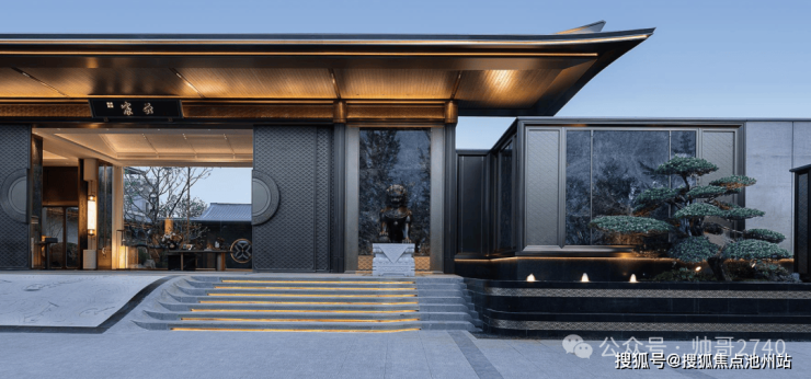 建筑设计上,宸云完美体现了建发房产"王府中式"的美学基因。小区大门采用歇山顶造型,形制媲美故宫乾清门,宽约53米(含景墙)、高近11米,鸱尾微翘,门两侧各置一块价值百万的蓝翡翠奢石,并配有高约2米(含基座)、重约600斤的铜狮镇宅,搭配罗汉松迎客造型树,从归家伊始就营造出浓厚的中式尊贵感。