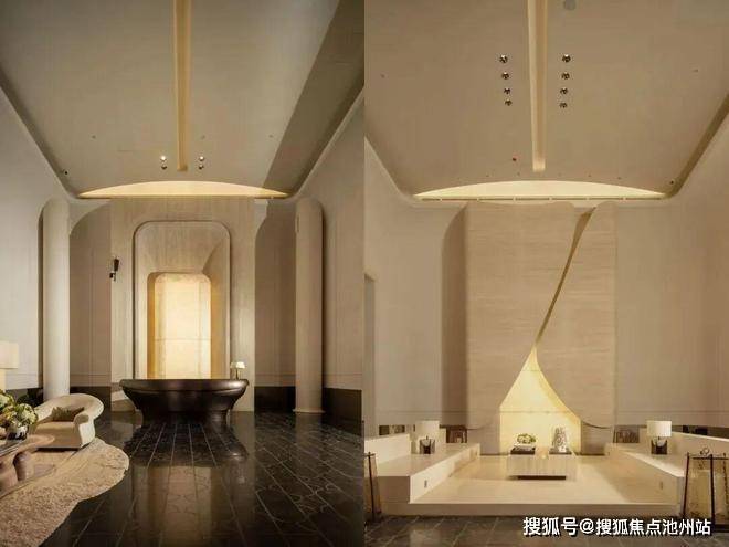项目创新打造的约2500㎡立体下沉式会所已实景呈现,半开敞式空间将自然光引入私宴厅、健身房等功能空间,悬浮结构设计使其与周边景观浑然一体。