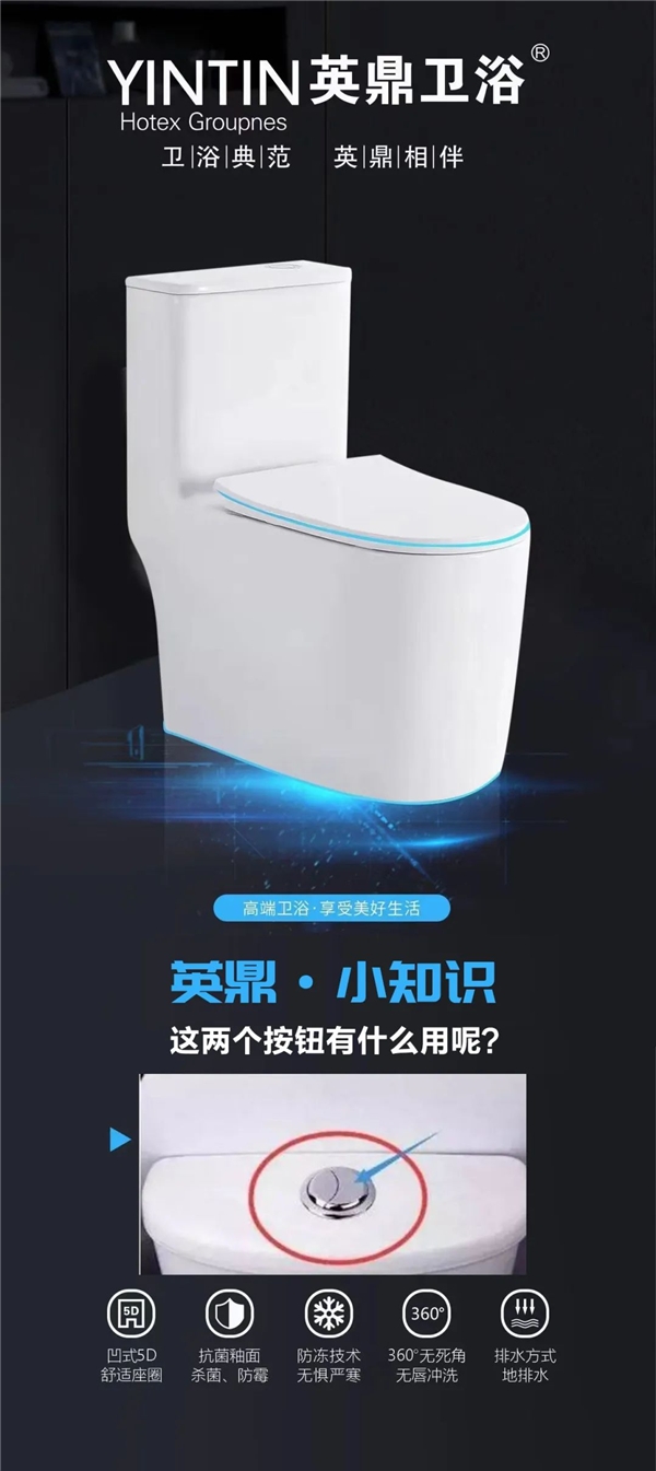 两个大小不同的按钮各自有不同的功能,根据不同情况使用不同的按钮方法,不仅高效,而且更加省水。