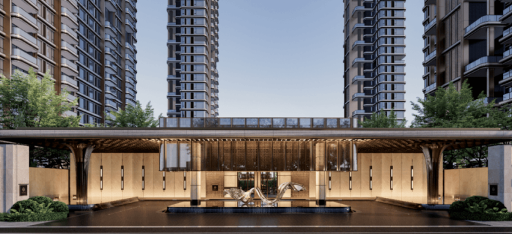 园林:项目是采用 " 一轴双园、三进五院 " 归家礼序,330 米长中轴园林