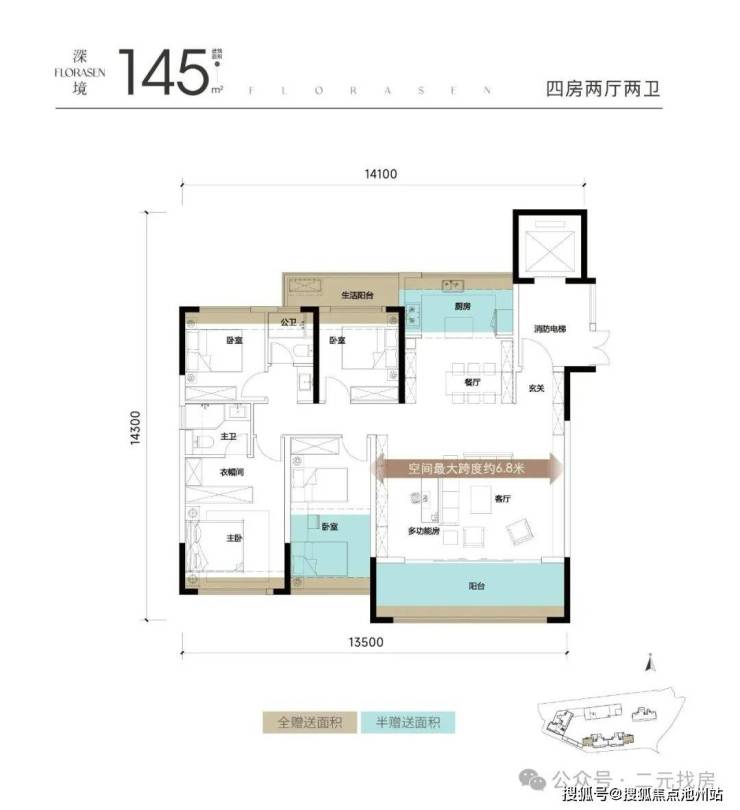 从目前的户型图来看,只有145㎡户型才有电梯前厅。