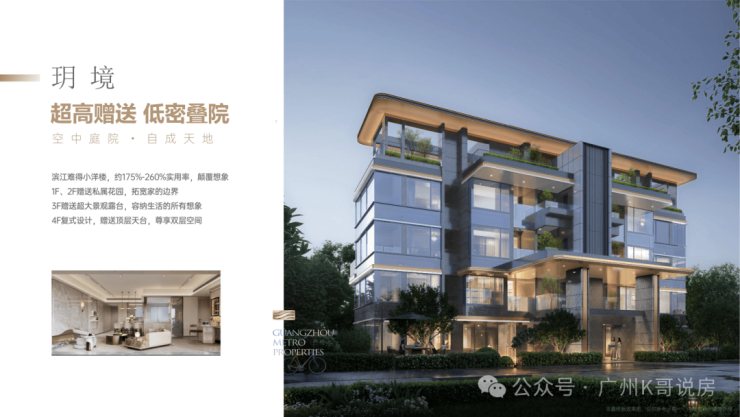 项目叠院小高层,层高仅5层,妥妥是广州绝版近10年的类墅级产品。