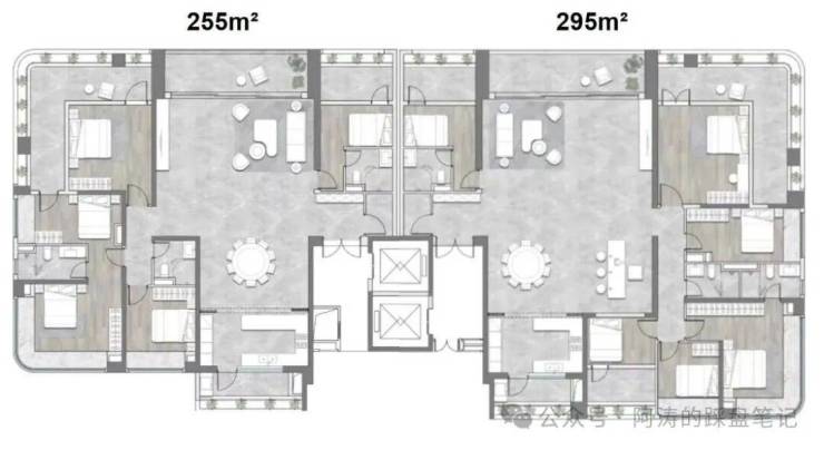 A3栋两梯两户255/295的面积