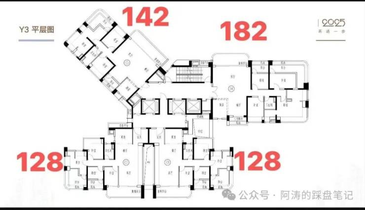 B3栋3梯4户128/142/182的面积