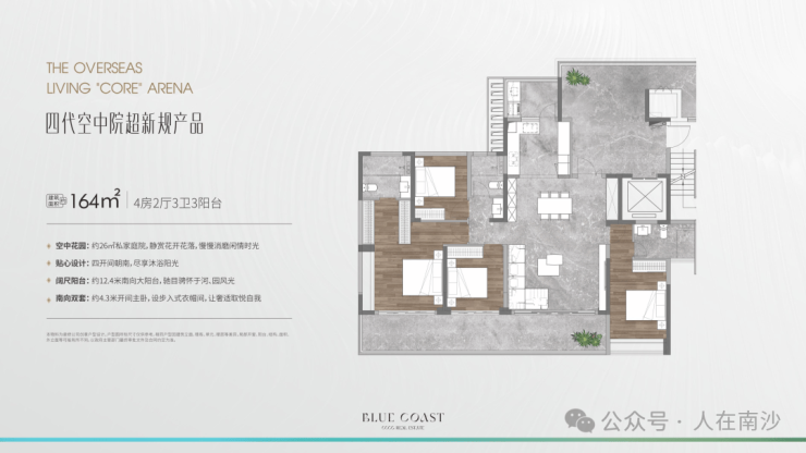 首期地块总建面约9.2万㎡,包括10栋16层住宅+2栋11层住宅。整个楼盘比起之前刚开始的时候已经进行了大调整,其中最大的亮点就是降低了容积率和楼栋高度。项目的容积率仅有1.57,全盘均为11-17层的小高层,且为纯板式设计,专梯专户。户型也是面向高端,户型已经升级为为四代空中院超新规产品,户户私享空中庭院,约30%的阳台占比,使用率约130%!首期共有5个户型,为建面约132-164-169-175-205㎡三至四房。