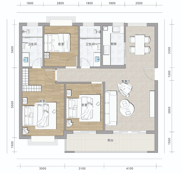 ◎舒适布局:客餐厨等动区,与卧室等静区分离,避免互相干扰