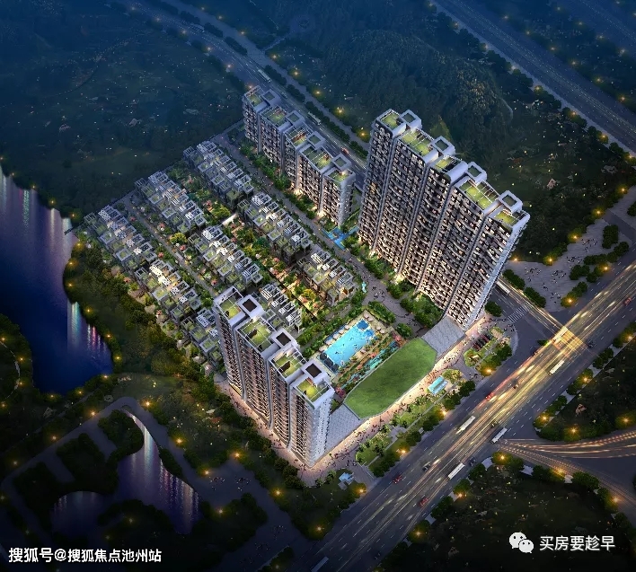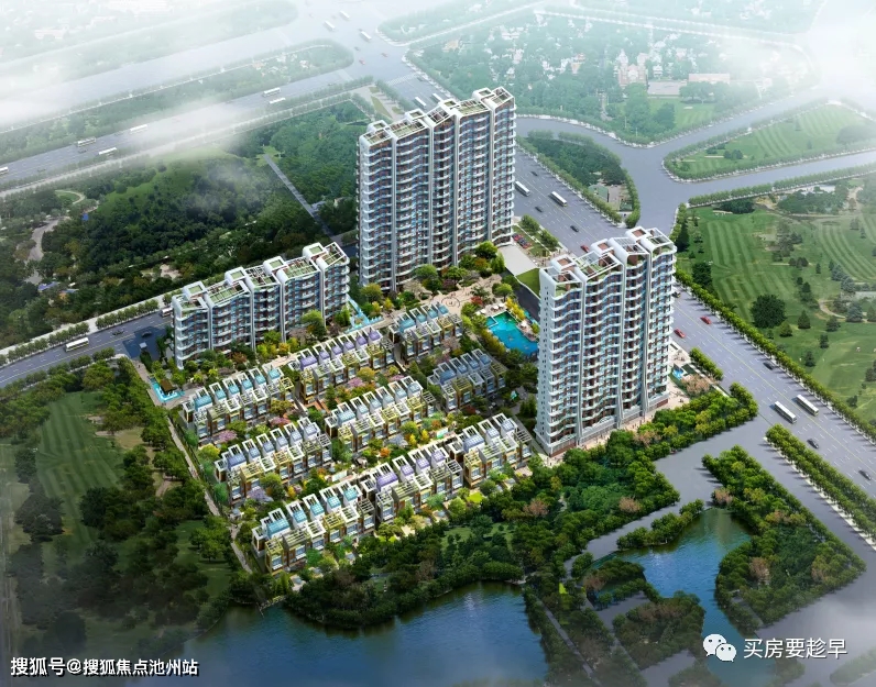 【整体规划】项目建筑面积12.6万㎡,由53幢联排别墅、1幢12层、1幢29层、1幢33层高层住宅和沿街商铺组成。
