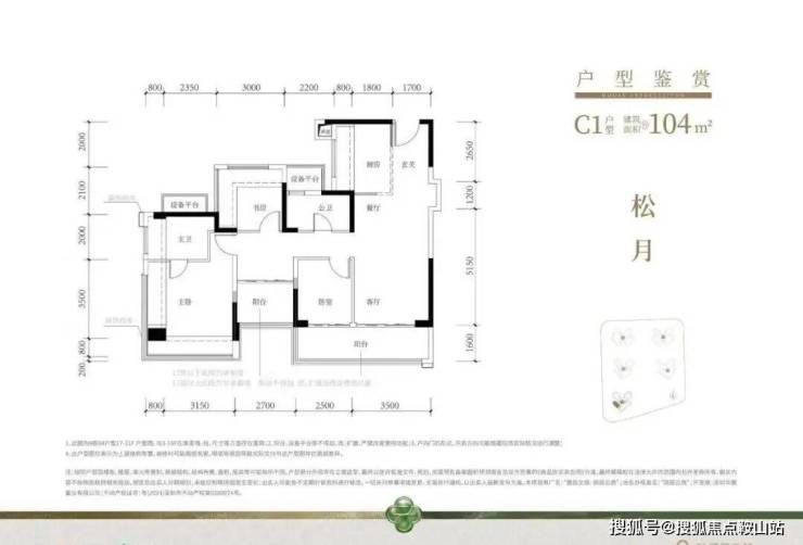 (1)建筑面积约104㎡户型