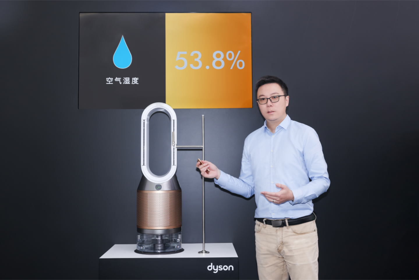 (戴森工程师Matt进行洁净加湿科技演示)