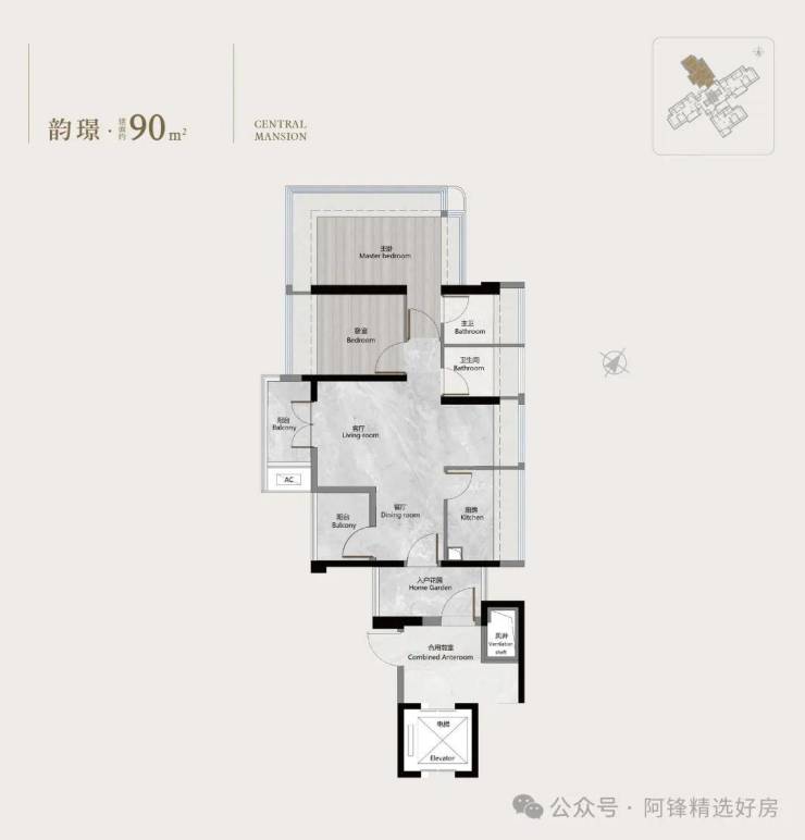 越秀阅璟台位于广州天河区天河智谷广棠板块,是越秀地产打造的低密改善型住宅社区。项目总占地约7.94万㎡,总建筑面积约11万㎡,容积率仅2.1,为天河区近五年出让宅地中罕见的低密净地。规划21栋住宅(15栋板楼+6栋塔楼),总户数约980户,绿化率≥35%。产品主打建面约90-135㎡的三至四房,板楼采用2梯2户专梯入户设计,塔楼为2梯4户,层高3.15米,通过新规设计实现约100%使用率,部分户型拥有4.5面宽朝南与南北对流双阳台,兼顾采光与通风。