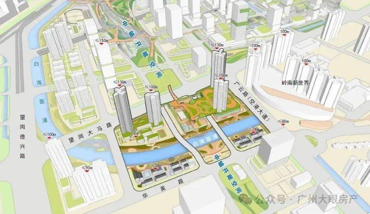 将采用“水岸共生”理念,以白海面涌为生态主轴,构建滨水慢行廊道。同时沿嘉禾望岗上盖设施打造景观化中轴公园,塑造片区创意活力。(非项目配建,以政府官方公示为准)
