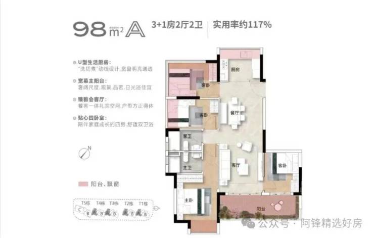 先说说约98平户型,可改造为3+1房2厅2卫格局,适合改善家庭一步到位。