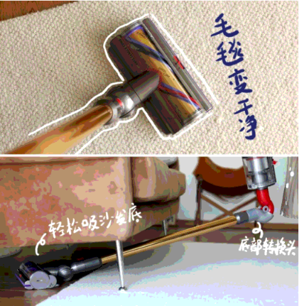 顺便再安利一个很实用的配件:底部转换头。加上它之后,不用弯腰趴在地上,也能轻松吸干净沙发底下的灰尘。