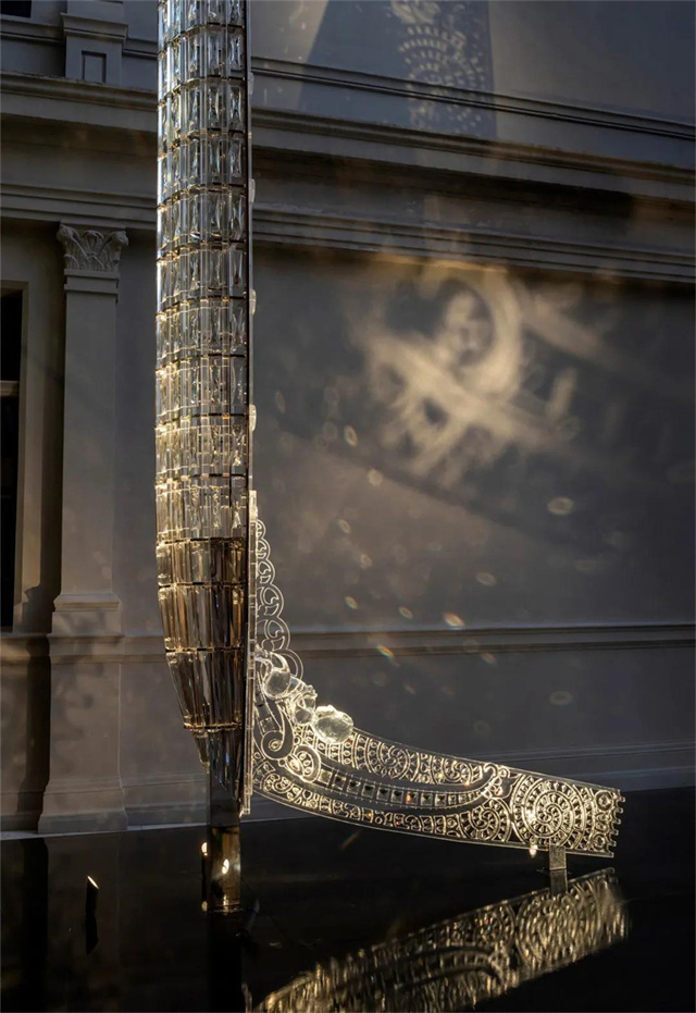 经折射光的照射,艺术装置与周边共同打造出星空的景象,仿佛引导我们探索未知的世界。