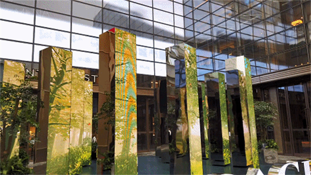 艺术装置镜面森林的设计灵感来自于SS21 Coach Forever理念,结合自然、沉浸体验和现代都市,传递健康、乐观及环保的品牌精神。在设计中融入很多动态元素,镜面柱体的旋转互动和森林光影的流转交融,让观众仿佛走进爱丽丝的梦游仙境。