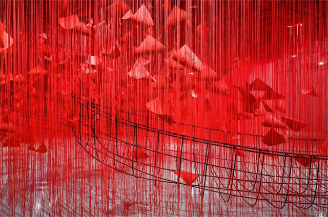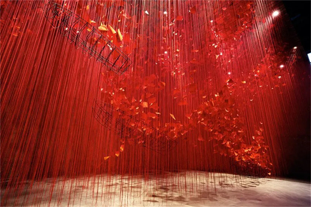 “我希望……”艺术装置是通过收集来自世界各地的10000封寄给盐田千春这位艺术家的信,而这个艺术装置本身正是对她邀请人们写下自己希望的回应。用数百万条相互连接的红线悬挂着红色的信件,打造沉浸式的钥匙和纱线迷宫。