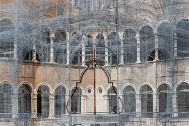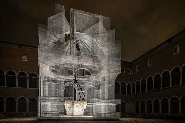 爱德华带来的艺术装置“幽灵城堡”,灵感来源于但丁在地狱中描绘的“贵族城堡”,通过幽灵般、瞬息的方式重构古典建筑的元素,打造既抽象又具象的“城堡”。