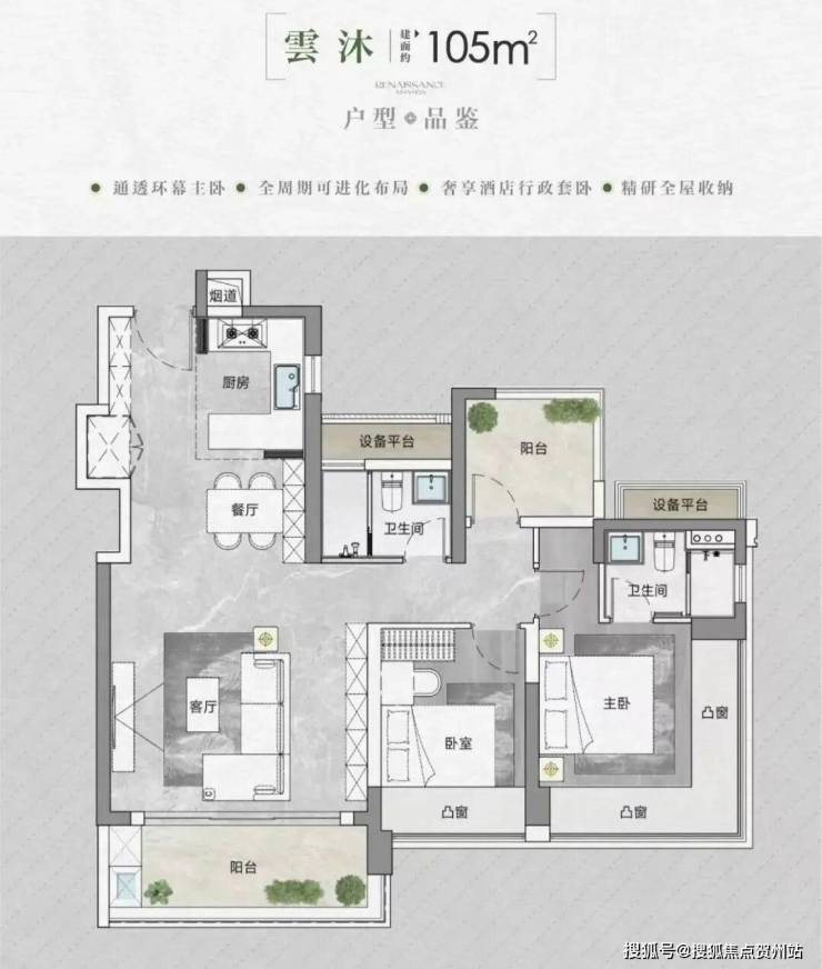 • 得房率:通过创新性的飘窗、双阳台改造、设备平台赠送等设计,实现平均94-96%的惊人得房率。