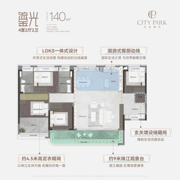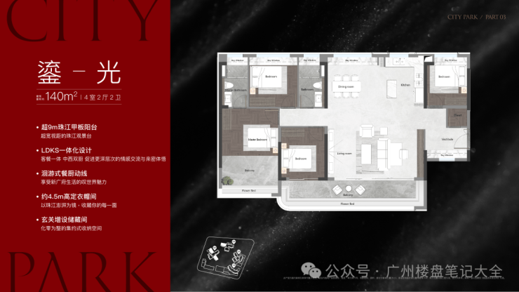 理由一:海珠主城唯一120方南向望江,享稀缺珠江江景景观产品