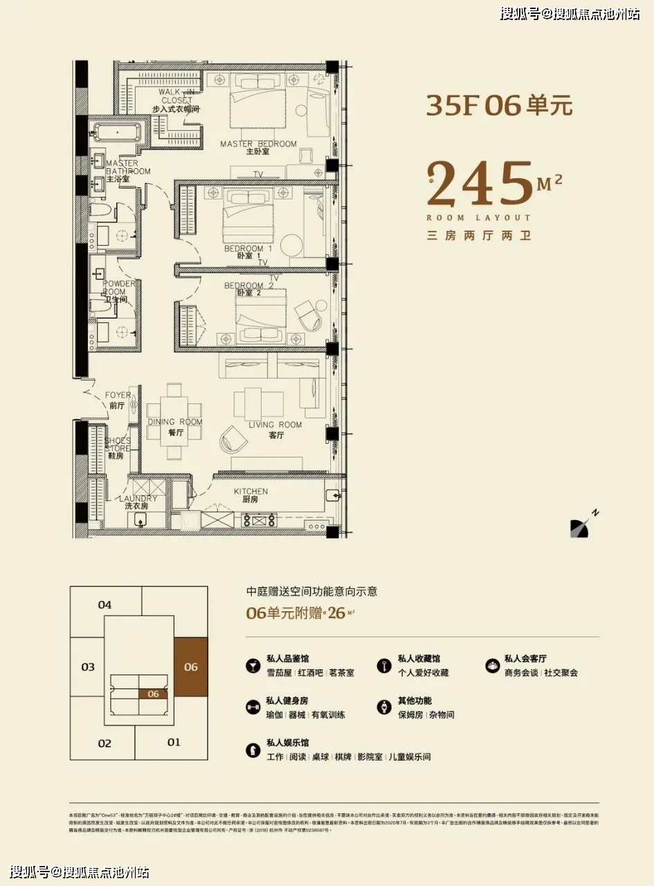 以样板房约418㎡四房两厅四卫户型为例,两侧的采光面宽,加在一起长达约38米。乘以层高,采光面积近180㎡,明媚到伤眼。