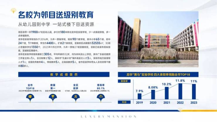 项目一街之隔为九年一贯制公办学校——深圳市龙华区实验学校,周边还有民顺小学、民治中学(初中)、未来小学和红山中学(高中)等。