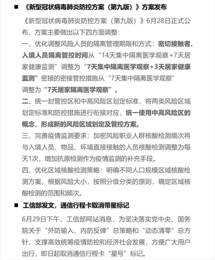 本周,工信部网站消息,为坚决落实党中央、国务院关于“外防输入、内防反弹”总策略和“动态清零”总方针,支撑高效统筹疫情防控和经济社会发展,方便广大用户出行,即日起取消通信行程卡“星号”标记。