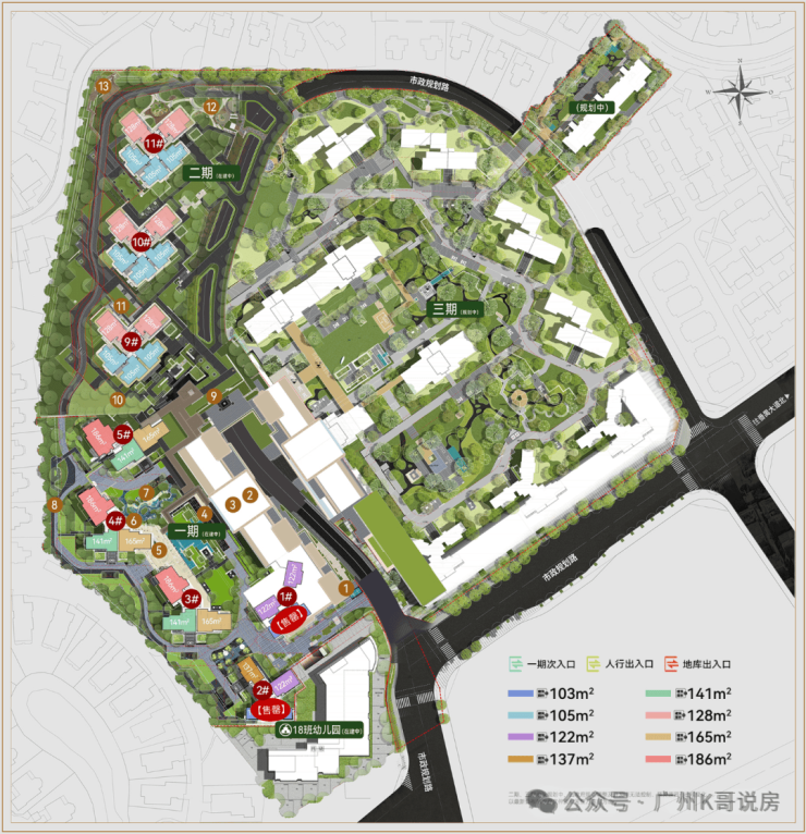 南部组团:与地铁口距离在2公里以上,出行依赖自驾,但学校及医院就在家楼下,周边回迁房很少,居住氛围相对纯粹。
