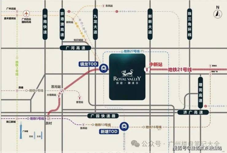 • 地铁21号线中新站上盖,快线3站到天河