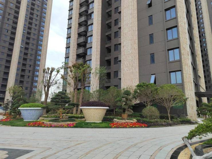 项目外立面采用的是 天然石材和真石漆 ,每幢楼的四个方向, 由下至上共布置了11条仿若祥龙般的石材 ,使建筑外立面更富立体感、经久耐用历久弥新!