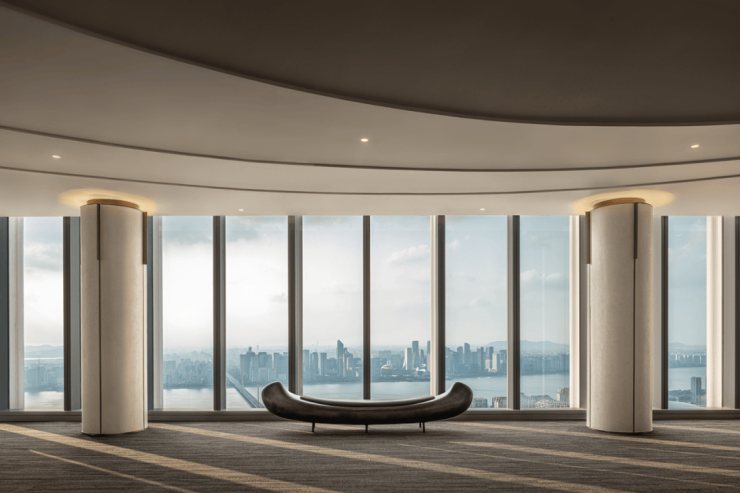 杭州世茂智慧之门项目总建筑面积达370,000平方米,共由5栋建筑组成,涵盖办公、公寓、商业及城市公园等多业态功能。其中,A、B两座超高层办公塔楼是综合体的核心;C、D、E附楼作为居住、商业及社区服务配套,扩展空间以配合完善项目的整体运营。