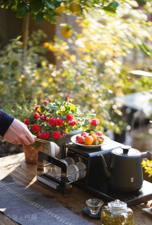 在院子喝茶,难免有灰尘,更需要一款自带收纳箱的茶艺壶,收纳箱能容纳8只杯子,喝完茶后也能进行紫外线消毒+热风烘干,保持茶杯干净清爽,喝茶更得劲。