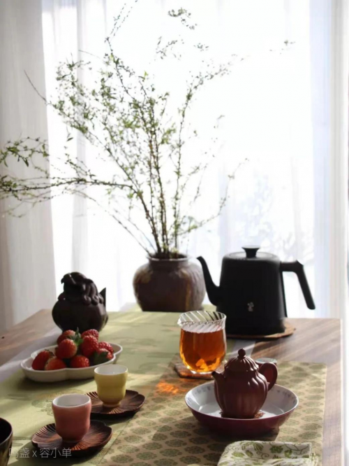 小茶桌也不怕失去仪式感,一个人喝茶时,无需太多的茶具装饰,一把茶壶,一只茶杯,足以度过一段静谧时光。