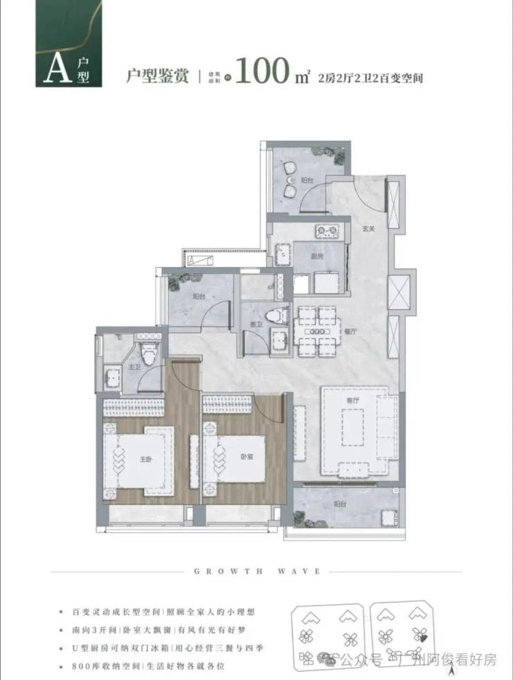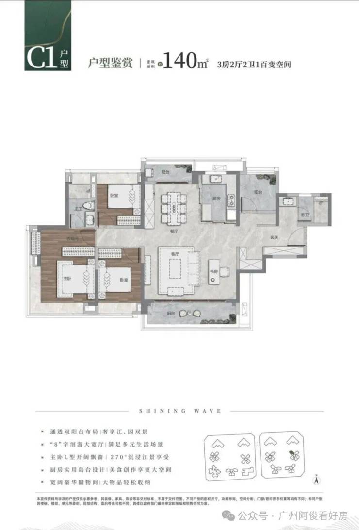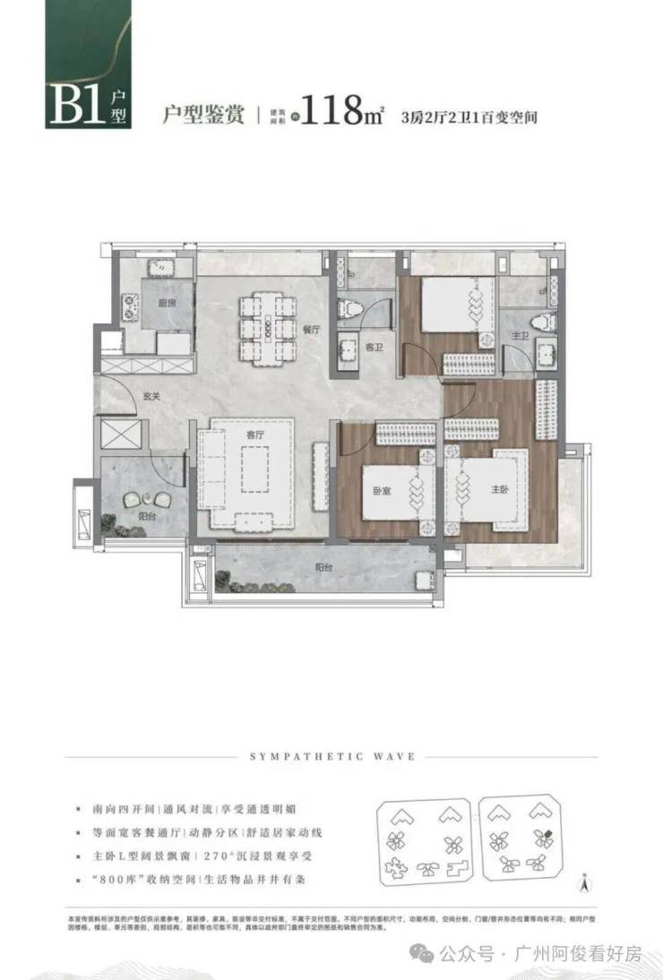 全四房设计:118㎡南向四开间+6米景观阳台,140㎡LDK一体化厅+双阳台;